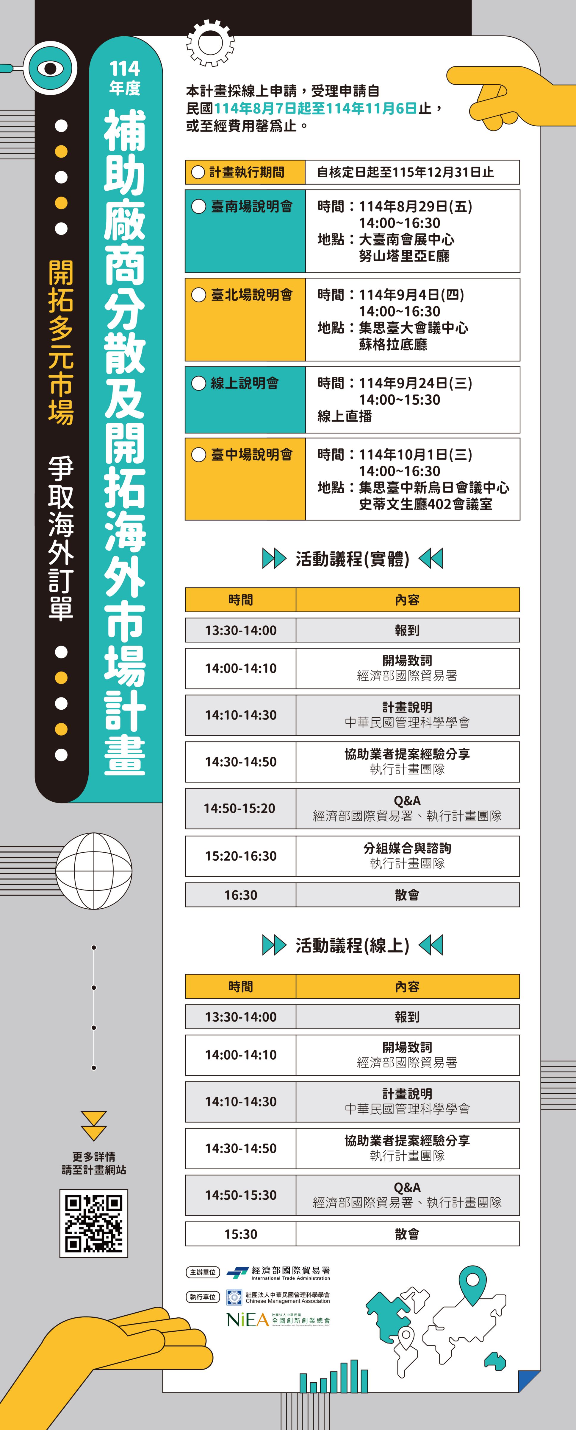 114年度補助廠商分散及開拓海外市場計畫說明會